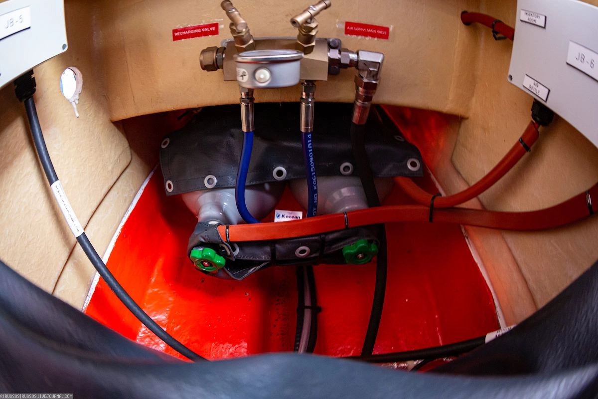 Особенность танкерного исполнения — системы наддува и орошения. Первая нужна для создания внутри шлюпки повышенного давления, чтобы продукты горения нефтепродуктов не попали внутрь. А система орошения предназначена для охлаждения корпуса шлюпки, если надо проплыть рядом с участком, где горят нефтепродукты.