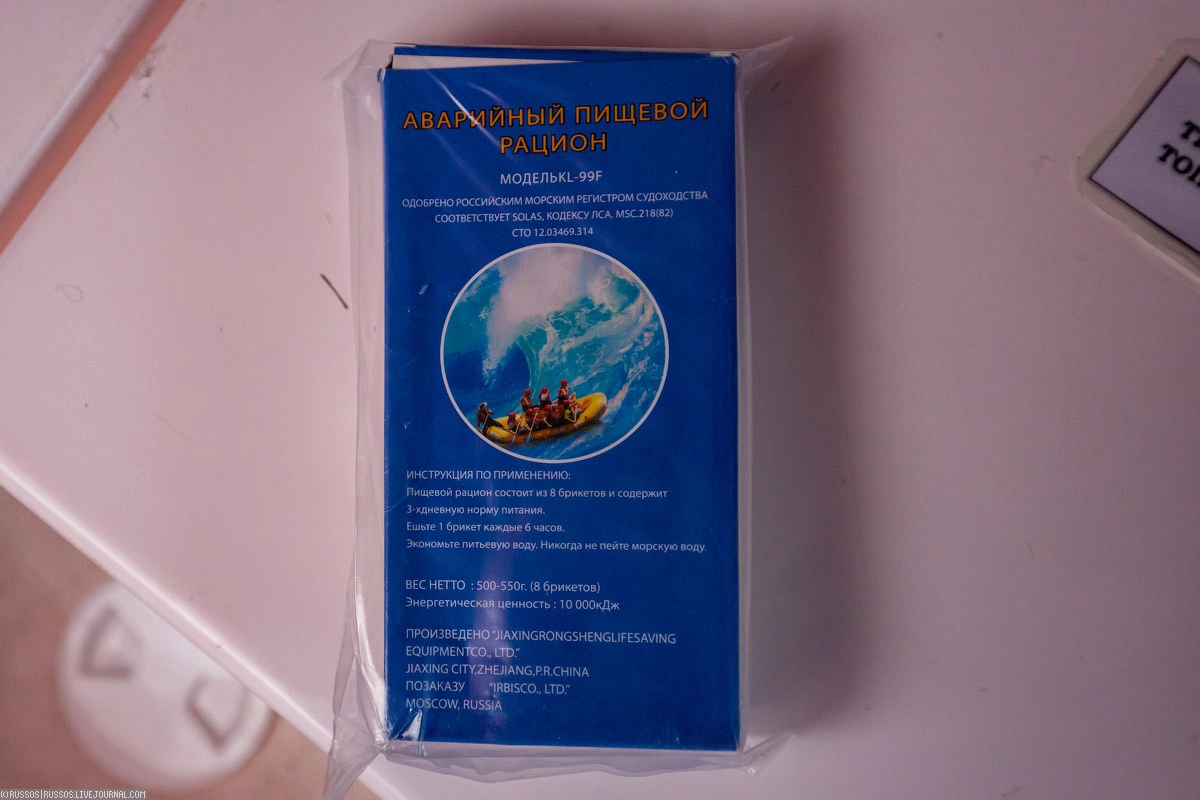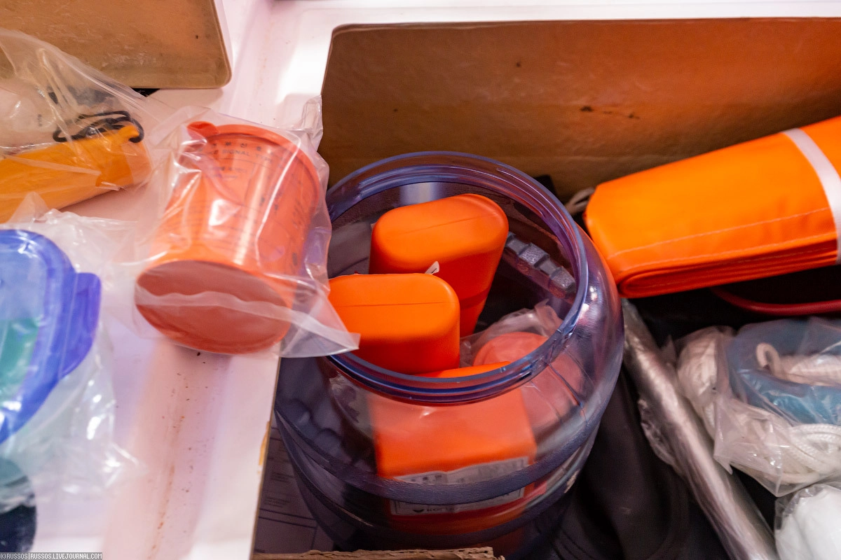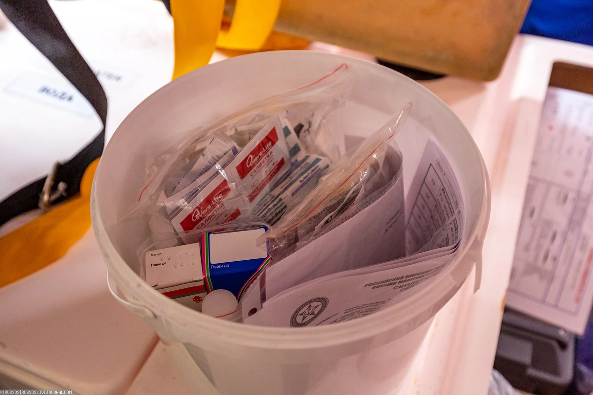 Лекарства. Естественно, все сроки годности соблюдены. Есть большой запас таблеток от укачивания — на шлюпке они обязательны.