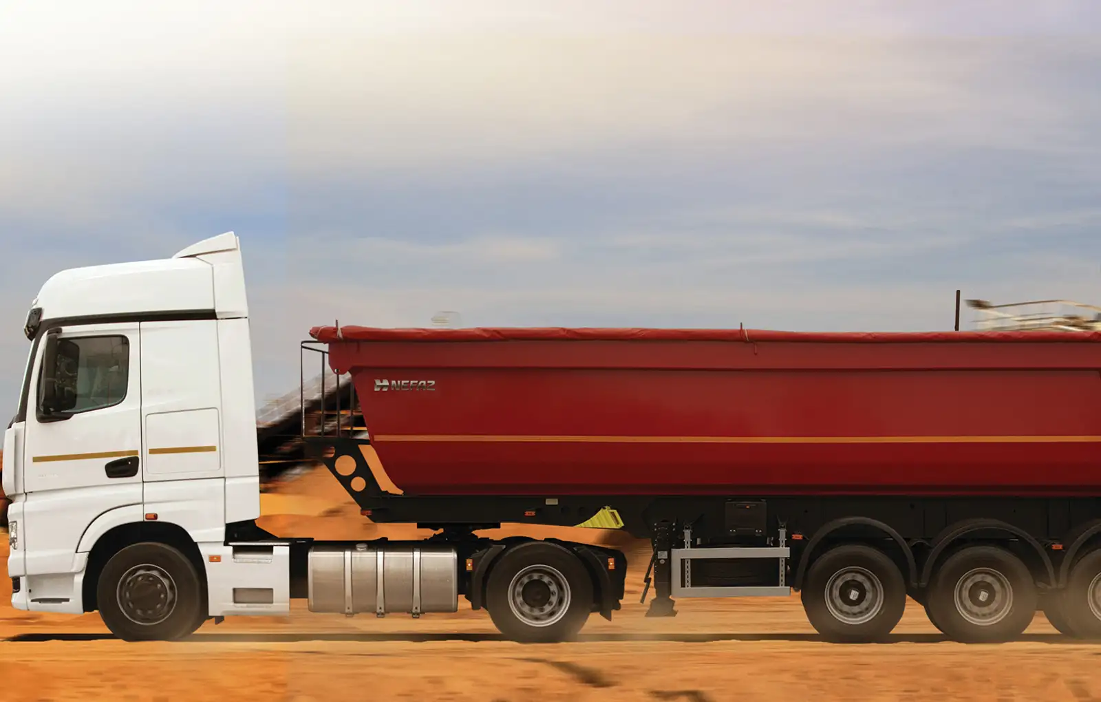 Полуприцеп, изготовленный на площадке ПАО «НЕФАЗ» (дочернем предприятия «КАМАЗа» в Башкортостане), также модернизирован: объем платформы увеличен на 3 м³, толщина пола и бортов — на 2 и 1 мм соответственно, повышены жесткость заднего борта и грузоподъемность гидроцилиндра — с 53 до 63 тонн. Кроме того, полуприцеп получил ряд дополнительных усовершенствований. В их числе — защитные сетки на задних фонарях, усиленная рама и подвеска, два буксировочных крюка, тормозная система с EBS, а также система автоматического управления подъёмной осью, работающая в зависимости от уровня загрузки транспортного средства, возможность управления тормозами полуприцепа по CAN линии.