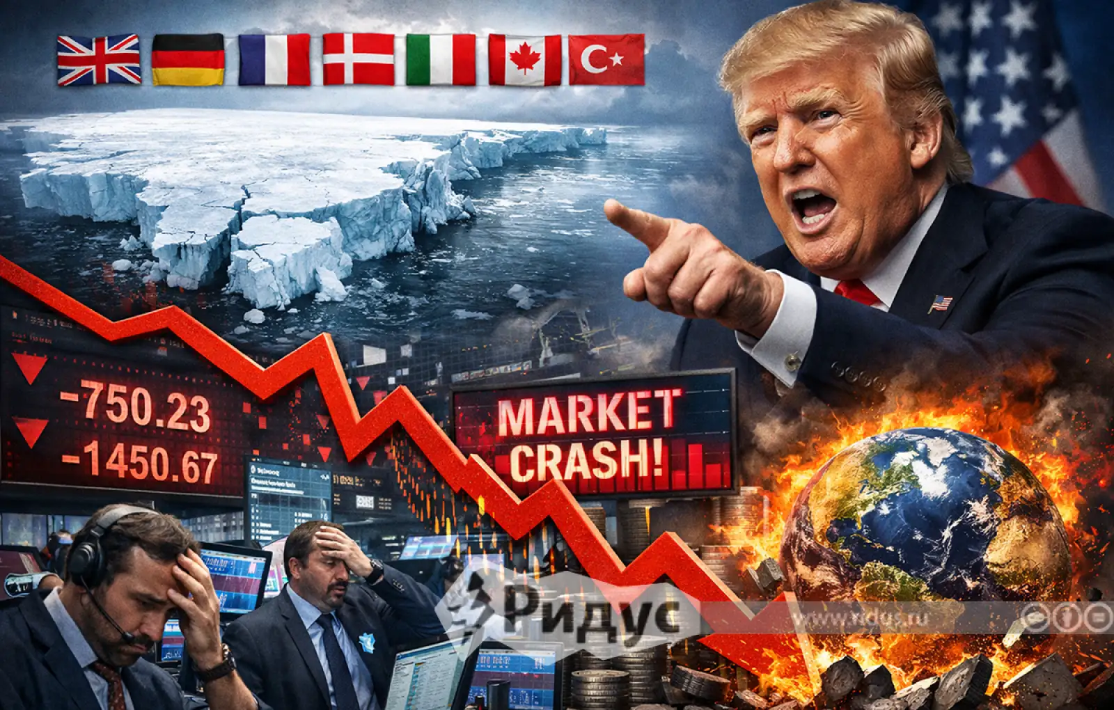 Угрозы президента США Дональда Трампа ввести новые пошлины в отношении восьми стран-членов НАТО из-за Гренландии обрушили мировые рынки. Ситуацию усугубили масштабные продажи японских облигаций.