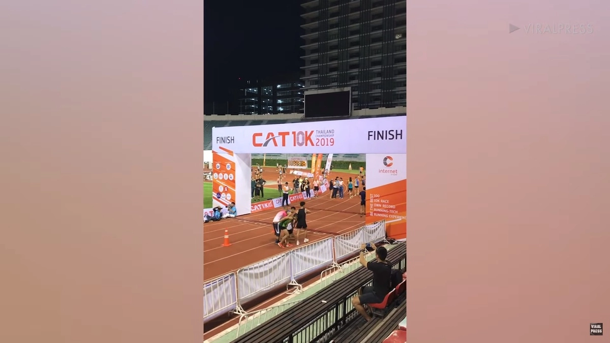 В Бангкоке тайский легкоатлет довел своего соперника до финиша. Случай произошел на соревновании CAT 10K Thailand Championship в забеге на 10 километров. На кадрах видно, как один из спортсменов повредил ногу и не может дойти до финальной черты буквально несколько метров. Один из атлетов взял его под руку и дошел вместе с ним. Пока они шли до конца круга, несколько спортсменов успели пересечь финишную черту, и это стоило добряку несколько потерянных позиций.