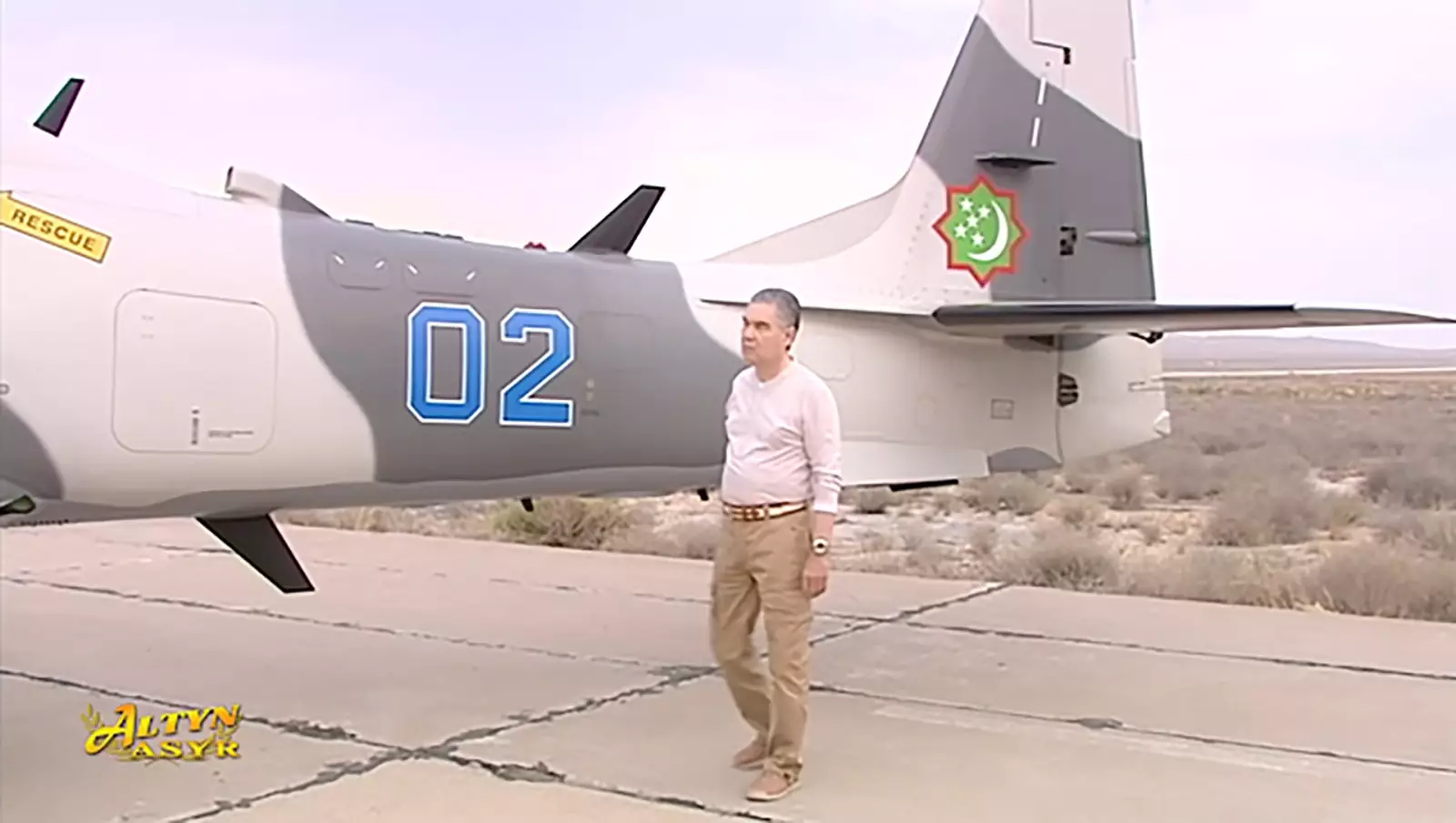 Президент Туркменистана Гурбангулы Бердымухамедов осматривает штурмовик «Супер Тукано».