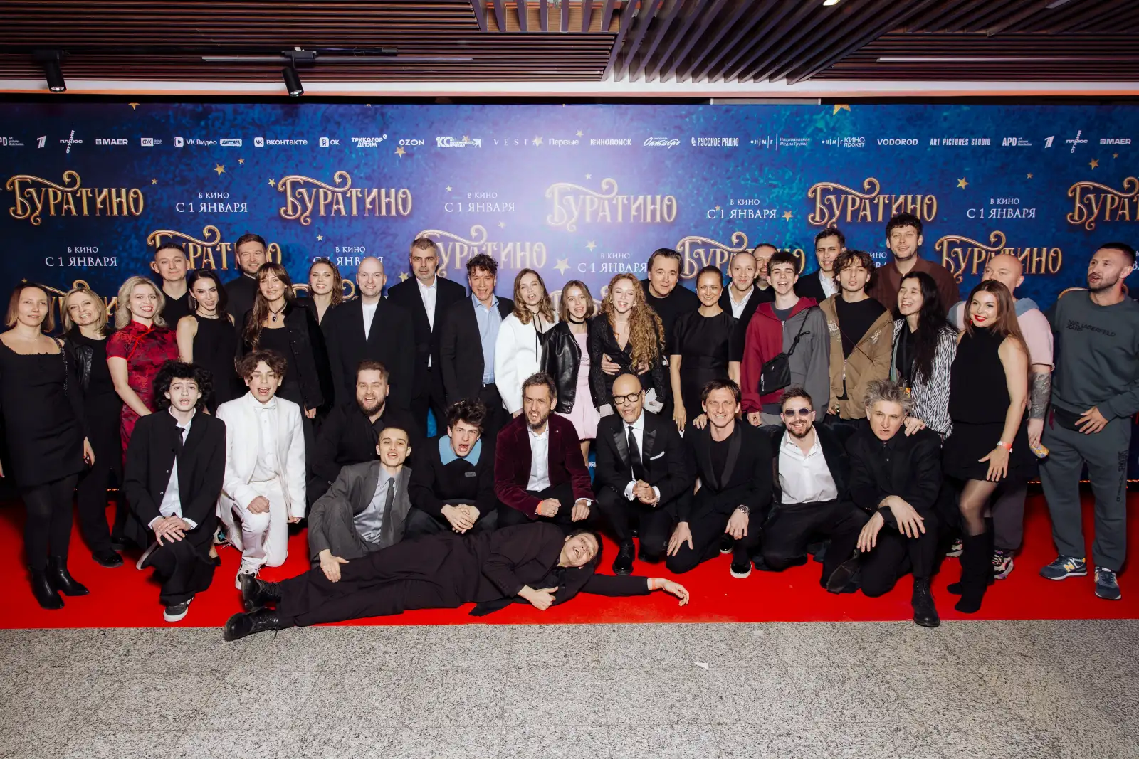Со сцены, которая с помощью спецэффектов превратилась в настоящий театр, зрителей приветствовали создатели сказки: режиссёр-постановщик Игорь Волошин, продюсер и исполнитель роли Карабаса Фёдор Бондарчук, генеральный директор Первого канала Константин Эрнст, генеральный директор «НМГ Кинопрокат» Вадим Смирнов, медиапартнер проекта Константин Майор, продюсеры фильма и основатели компании «Водород» Михаил Врубель и Александр Андрющенко.