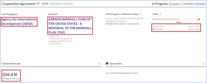 Примечательно, что единственный страной реализации гранда, выделенного USAID Германскому фонду Маршала стала Россия.
