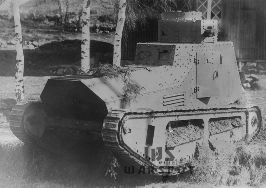 На самом деле башенная версия танка, оснащённая пулемётом, была создана ещё во время войны, но достроить серию не успели, поэтому далее наработками воспользовались шведы. Так вот, детище Йозефа Фольмера, не успевшее на поля сражений Первой мировой войны, имело отличную для своего времени обзорность. Имелась командирская башенка со смотровыми щелями, смотровые приборы в башне, часть из которых закрывалась бронированными крышками.