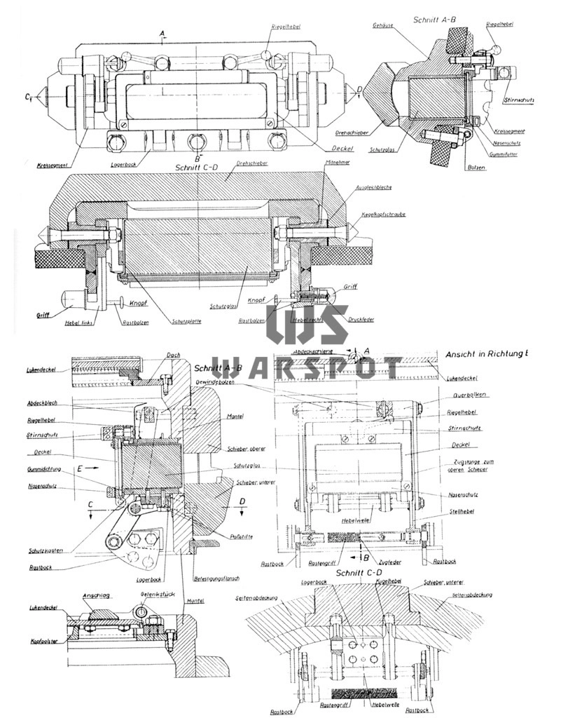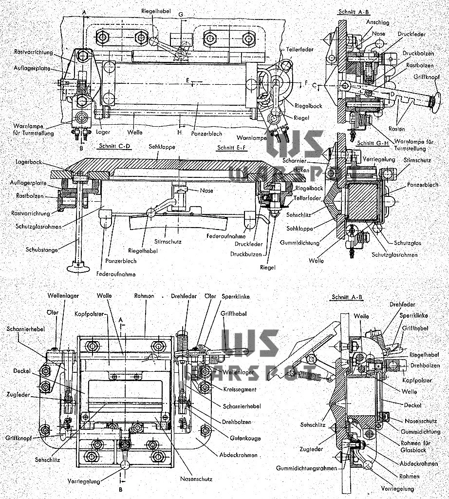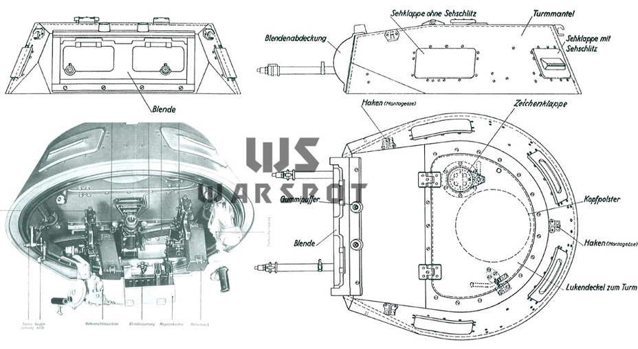 Решение довольно спорное, поскольку существовал риск получить в лоб пулю либо осколок, но его далее транслировали на башню Pz. Kpfw. II, а также Pz. Kpfw. III. На башне Pz. Kpfw. IV, которую разработал Krupp, эти лючки тоже были, но их перенесли на лобовую часть башни. Наконец, у этой башни имелось четыре смотровых лючка на бортах и корме.