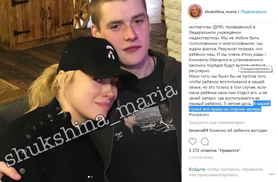 И мы очень этому рады! Алименты Макаром в установленном законом порядке будут выплачиваться регулярно», — написала Шукшина.