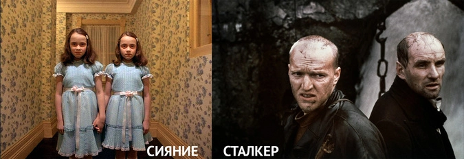 Разумеется, это очень разные ленты — и по сюжету, и по картинке, и по возникающим ощущениям. Для одних «Сияние» может быть лучшим фильмом ужасов на свете, а «Сталкер» — невыносимой скукотищей; другие, напротив, скажут, что Тарковский каждый кадр насытил глубочайшими мыслями, а Кубрик, поддавшись искушениям жанра, погнался за «дешёвыми» искусственными эффектами. Однако есть между этими двумя произведениями и точки соприкосновения.