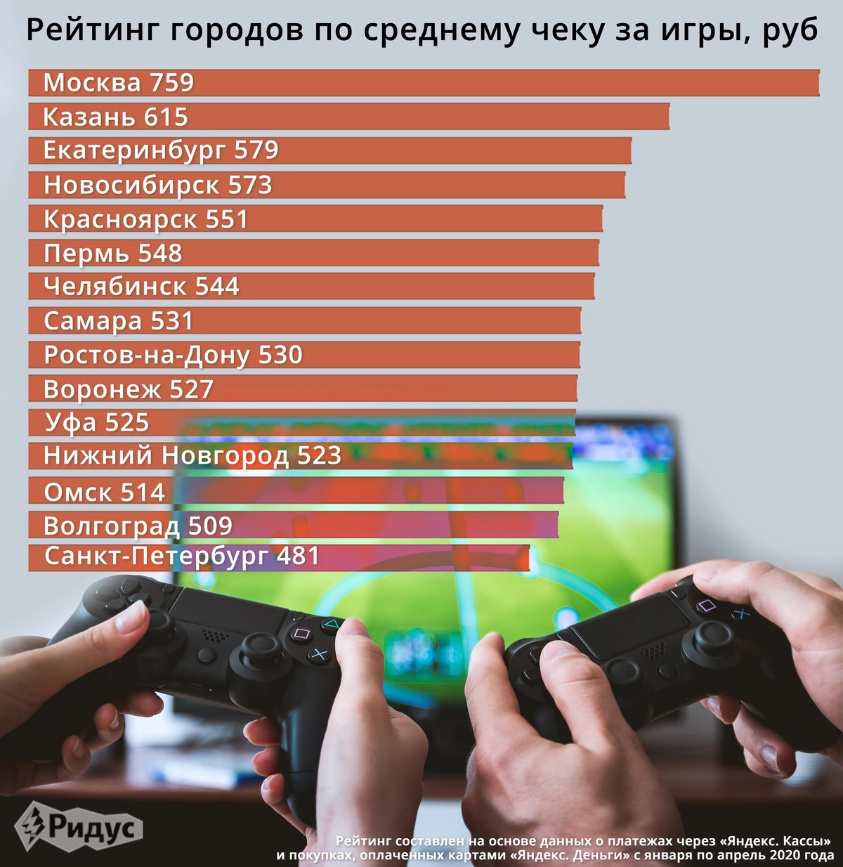 Самый большой средний чек за компьютерные и консольные игры среди жителей городов-миллионников в январе — апреле 2020 года оказался у москвичей. Об этом «Ридусу» сообщили в сервисе «Яндекс.Деньги».