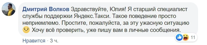 За несколько часов пост набрал большое количество комментариев. На публикацию отреагировал и сотрудник «Яндекс.Такси» Дмитрий Волков.
