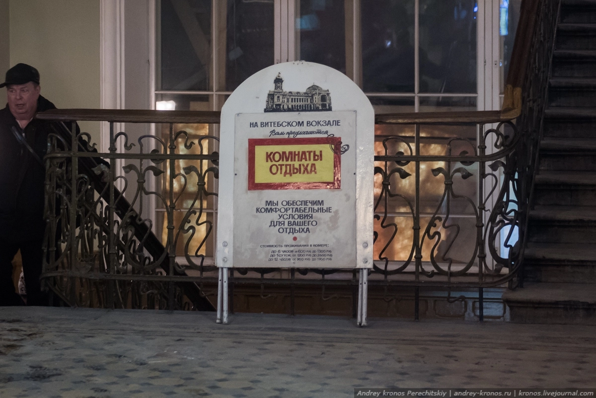 К сожалению или к счастью, но на данный момент Витебский вокзал находится на реконструкции, поэтому оценить его наружное оформление не выйдет.