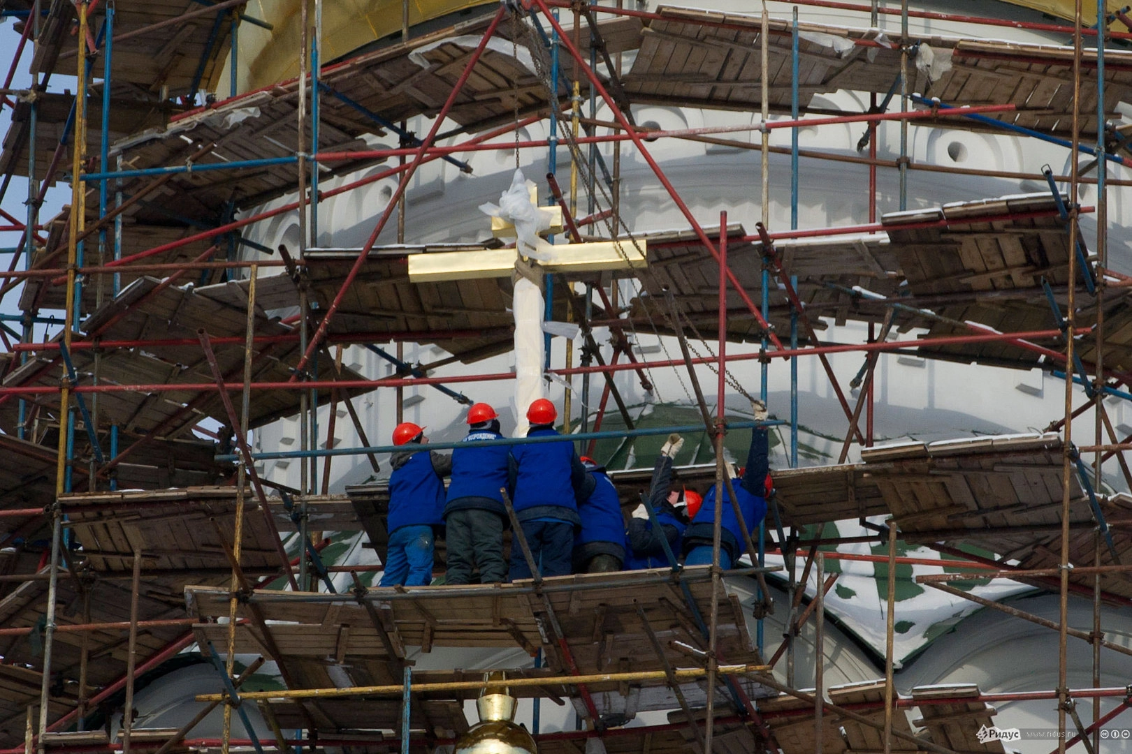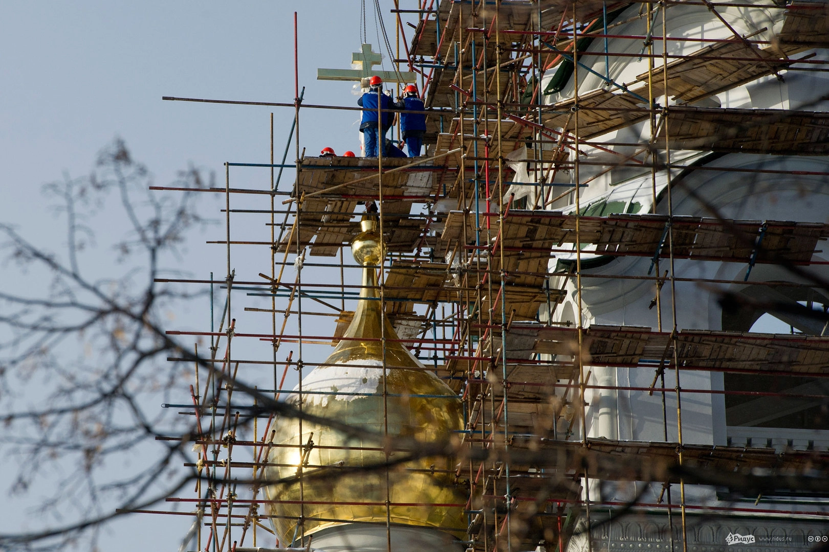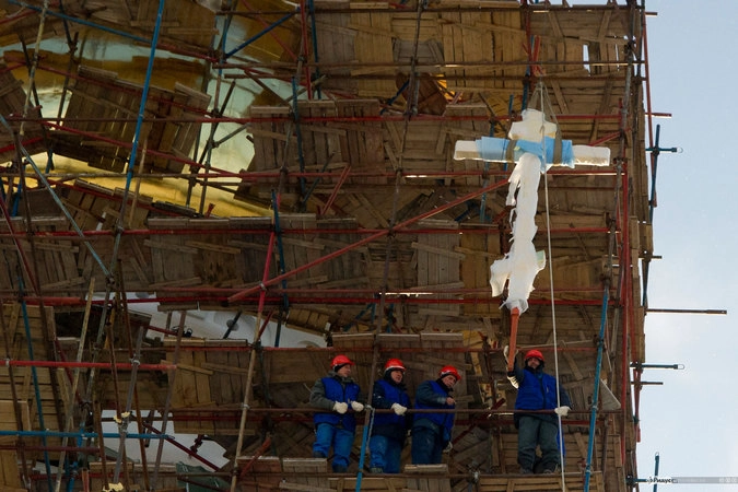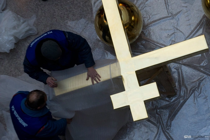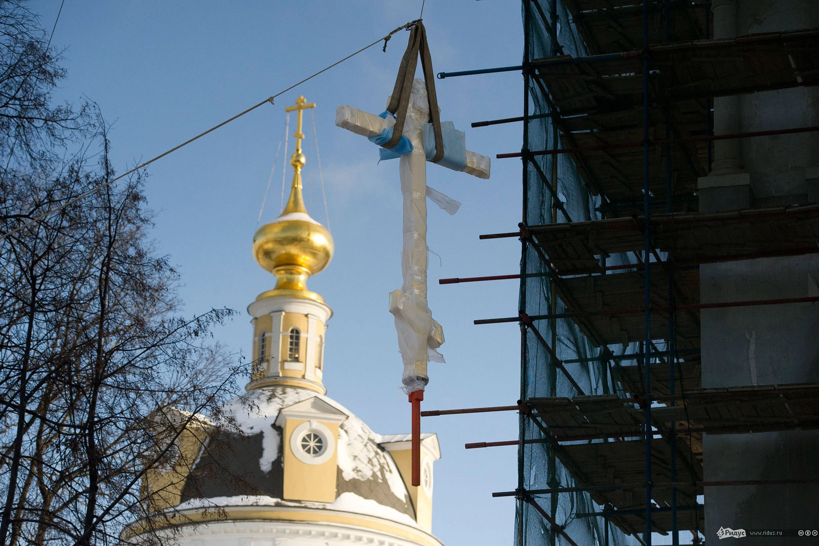«В ходе реставрации глав храма-колокольни специалистами были демонтированы пришедшие в неудовлетворительное состояние северный и южный кресты. Отреставрированные в точном соответствии с историческими чертежами кресты будут воздвигнуты обратно», - говорится в сообщении Департамента культурного наследия Москвы, поступившем в «Ридус».
