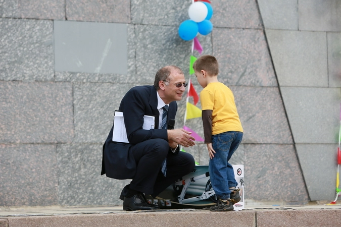 Он подарил самокат самому маленькому участнику марафона Кириллу Карашевскому.