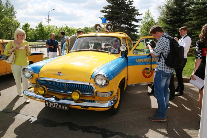 Представители «Музея Госавтоинспекции» провели для юных участников марафона увлекательную экскурсию, по приехавшим на праздник экспонатам – патрульным ретро автомобилям. Они рассказали историю создания и модификации машин и даже разрешили залезть внутрь и порулить.