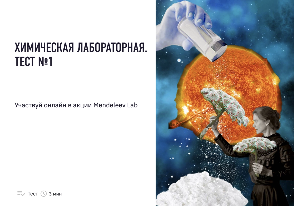 «Лаборантов» (то есть участников) ждут 40 заданий разного типа, которые с ними разберут «завлабы» — ведущие ученые-химики и популяризаторы со всего мира. Проверить свои знания по химии можно также поучаствов в онлайн-тестировании на сайте laba.media.