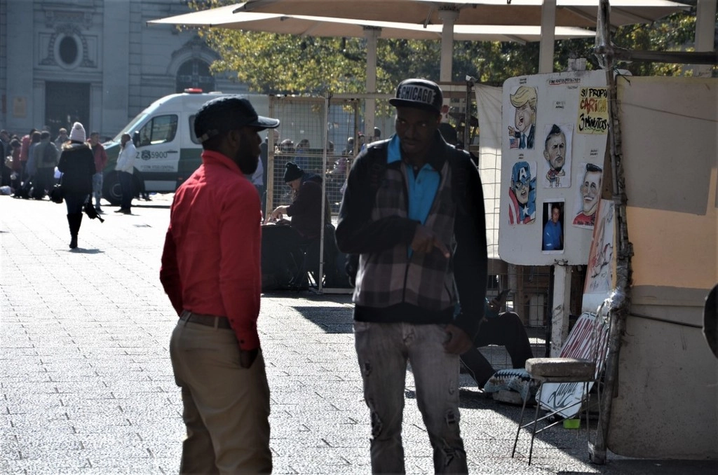 Когда я фоткал спящего бомжа, из проезжавшей машины тетенька мне указала пальцем на тех африканцев вдали, мол, осторожно. Это уже третье предупреждение. Похоже, местные жители всерьез озабочены криминалом в городе.
