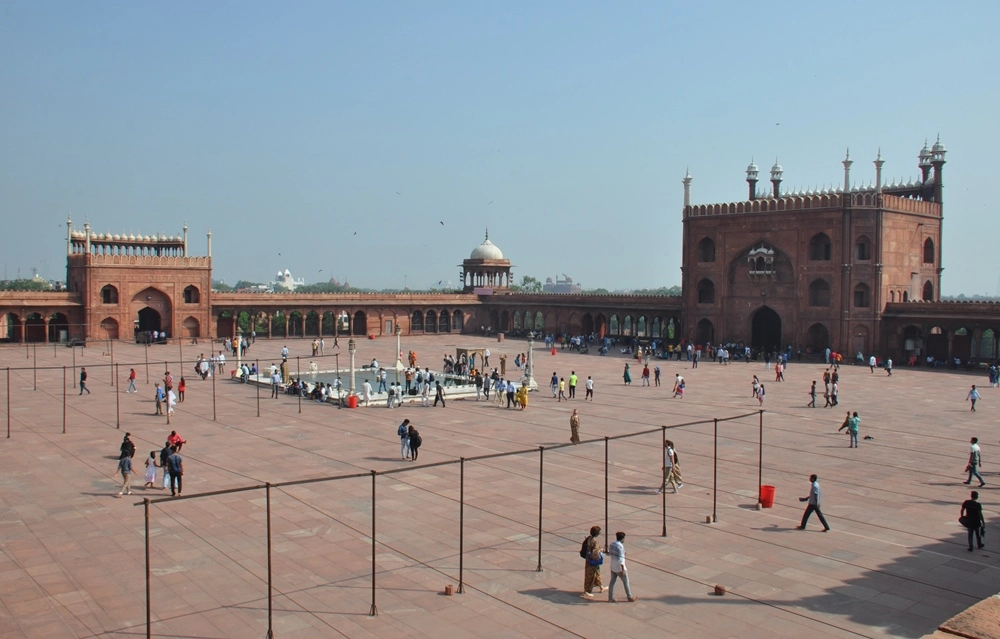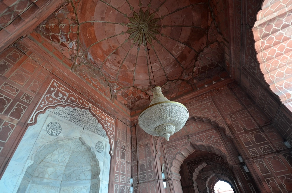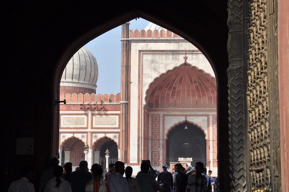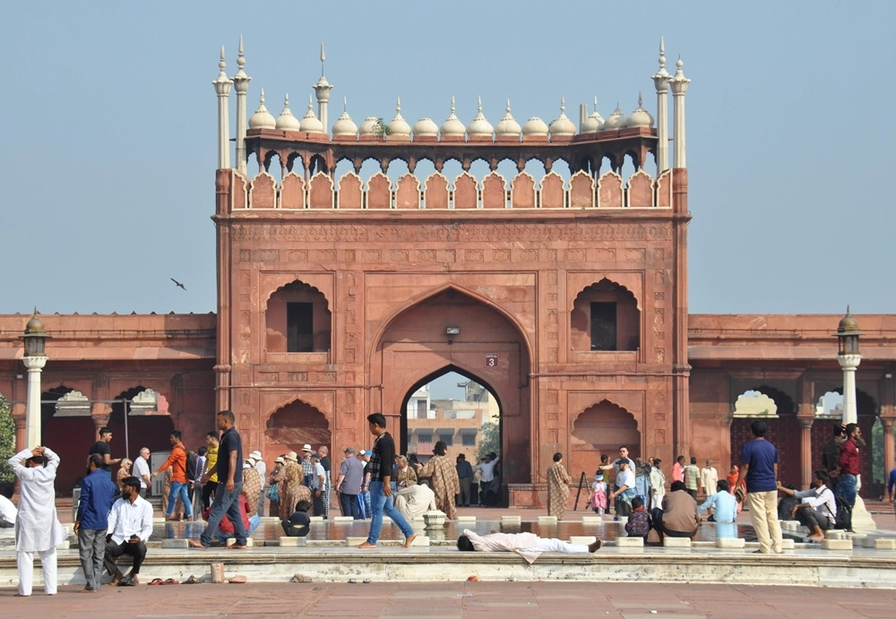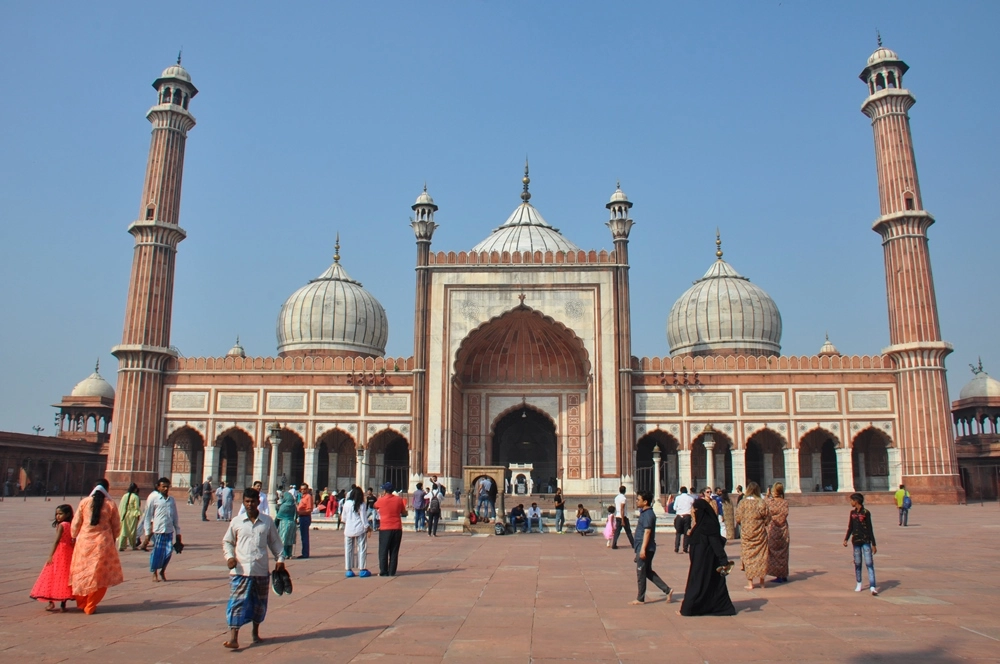 1. Джама Масджид — крупнейшая мечеть Индии с высокими минаретами и мраморными куполами — была построена в 1656 году при императоре Шах-Джахане, правителе существовавшей на территории современных Индии, Пакистана, Бангладеш и частично Афганистана в XVI — XVIII веках могучей Империи Великих Моголов. Помимо мечети Джама Масджид, Шах-Джахан обессмертил своё имя ещё и постройкой Тадж-Махала в Агре (мы там потом тоже побываем). Джама Масджид — пятничная (или Джума) мечеть, самая большая и главная в центральной части Дели.