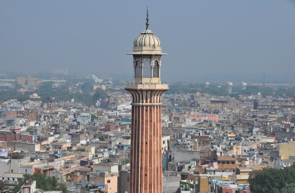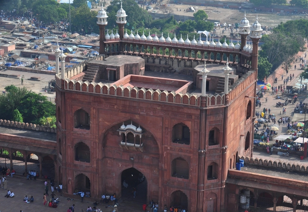 11. С минарета мечети открываются отличные виды Старого Дели. Башня перед входом на площадь.