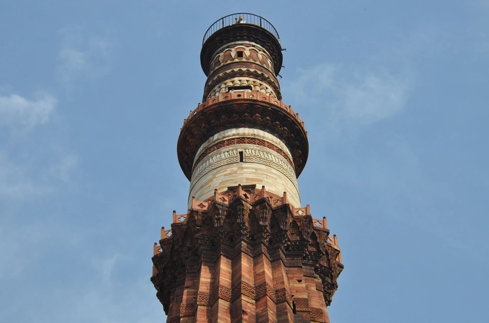 41. Высота минарета — 72.5 метра. Он был построен в период с 1193 по 1368 годы несколькими поколениями правителей Делийского султаната, первого исламского государства на территории современной Индии. Минарет, помимо религиозной цели, также ставил собой цель показать мощь ислама, а также использовался в качестве сторожевой башни — с вершины просматривались окрестности Дели на много километров вокруг.