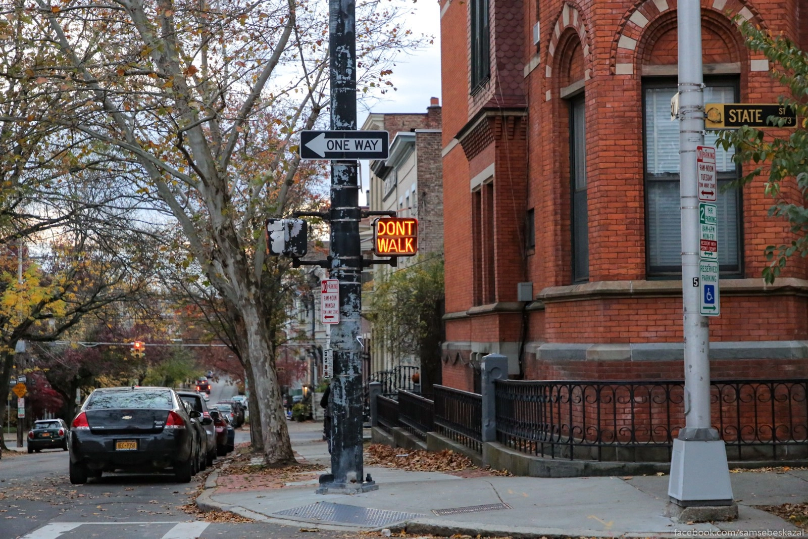 Старорежимные светофоры. Такие нынче только в кино увидишь. И в Олбани.