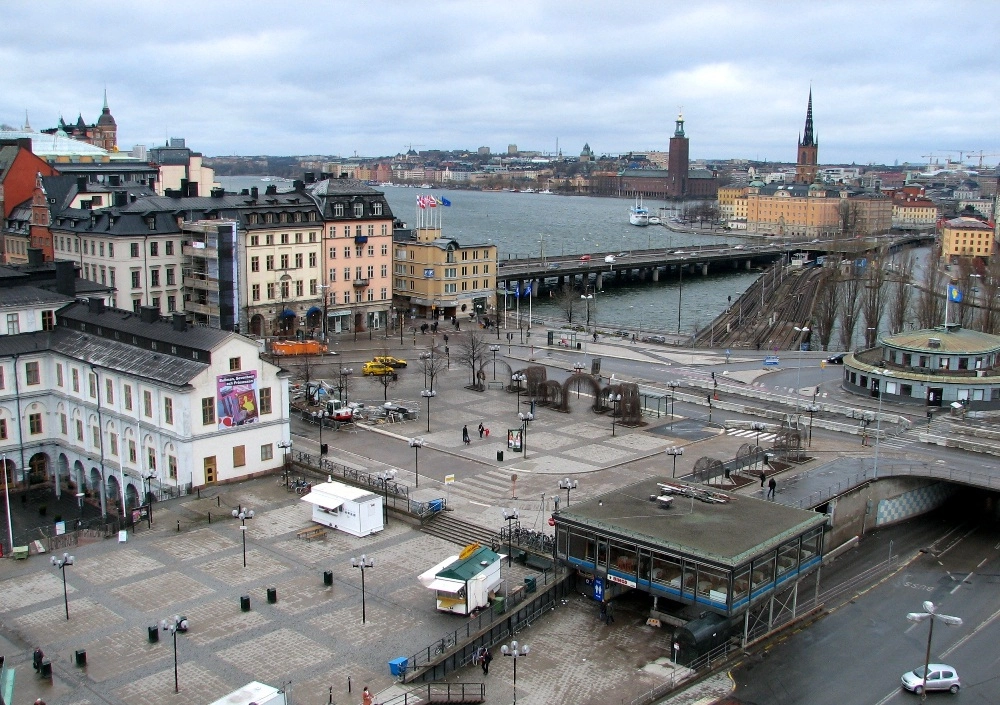 Знакомство со Стокгольмом начнём со смотровой площадки. Лифт «Катарина» поднимает туристов на 38 метров над береговой линией, откуда открывается прекрасная панорма города.