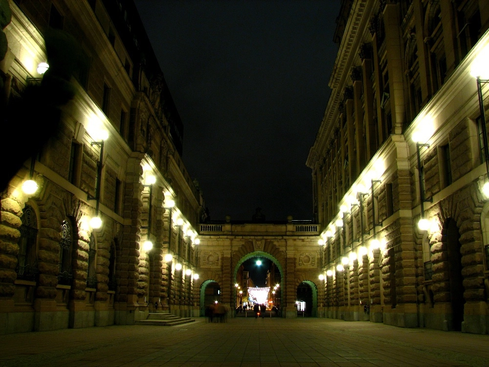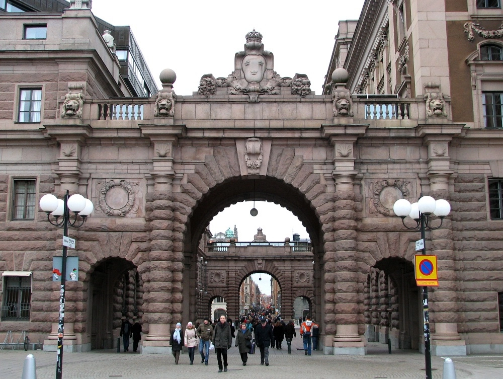 Проход мимо величественного здания правительства Riksdagshuset и далее на оживлённую торговую улицу Drottninggatan.
