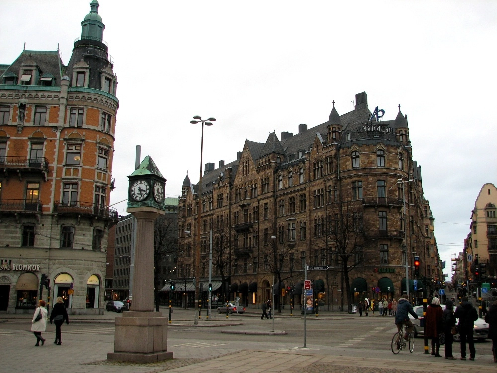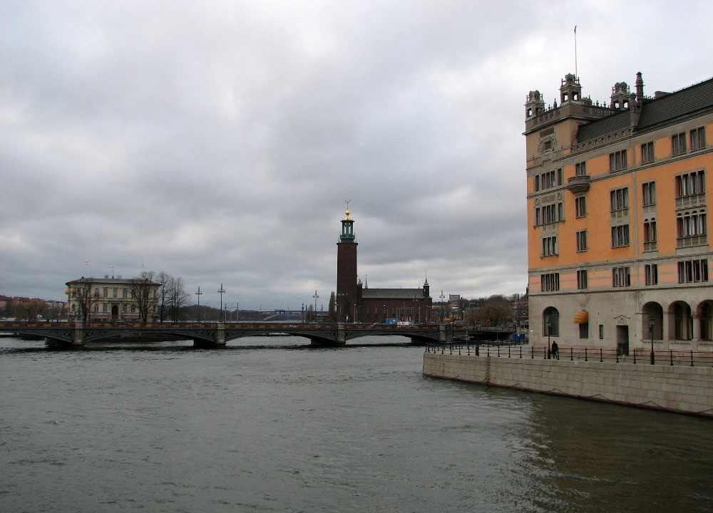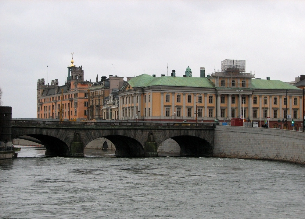 На северной границе Старого Города. Переходим по мосту через Norrstrem — стремительный водный поток, пересекающий историческую часть города, поток, по которому вода из озера Riddarfjorden попадает в морской залив. Этот проток отделяет Старый город от расположенного севернее района Norrmalm — также интереснейшей части Стокгольма. Туда-то мы и направляемся.