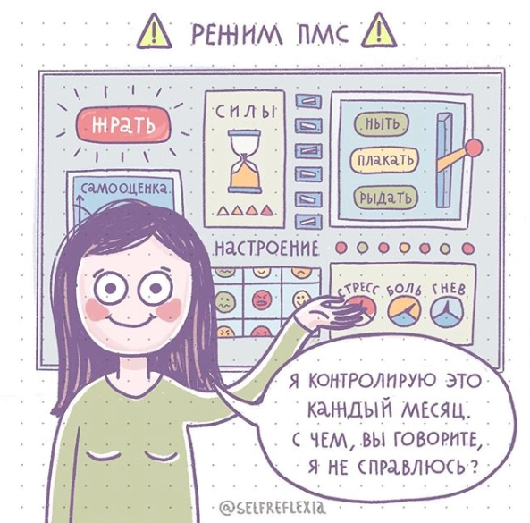 Об этих проблемах Татьяна рассказывает в юмористическом ключе — например, предлагает решать их с помощью правильной подборки таблеток и одежды, а ПМС управлять с помощью мощного пульта.