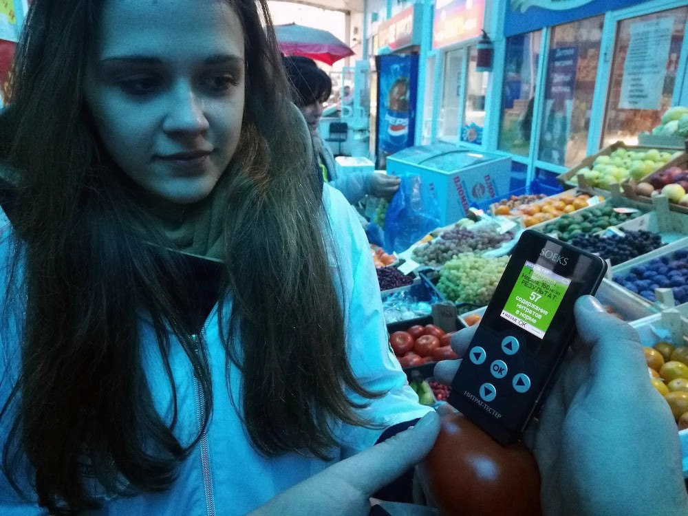 В пятницу, 28 октября, на Ярославском рынке в Москве представители проекта «Экологическая экспедиция» движения «Местные» в ходе эко-рейда совершили пробную закупку фруктов и овощей и проверили их на содержание нитратов.