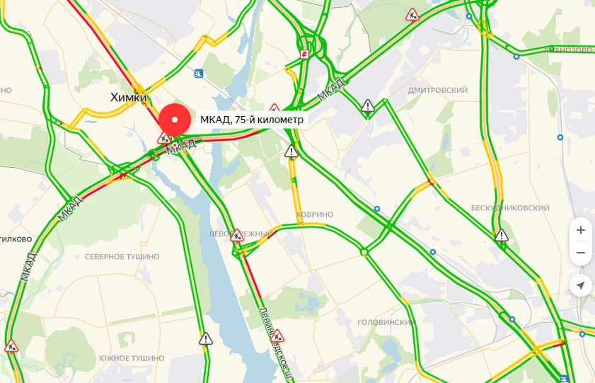 По словам очевидцев, из-за аварии блокированы четыре полосы движения. В районе ДТП возникла пробка, о чем свидетельствуют данные соответствующего сервиса «Яндекса».