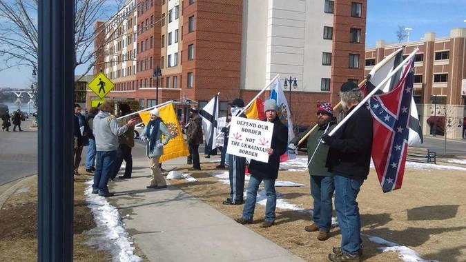 Организатором акции, состоявшейся 28 февраля, выступила группа сторонников Конфедерации Южных штатов. Участники пикетировали статусную конференцию членов Республиканской партии «Консервативное политическое действие», на которой обсуждались перспективы поставок оружия Украине.