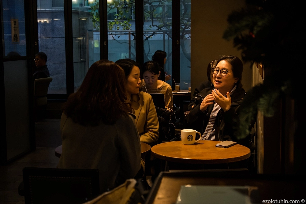 В русском районе Сеула я общалась с русской мигранткой, которая уже пятнадцать лет живет в Корее, приехала в страну с мужем, родила детей, которые выросли и, по ее словам, «стали корейцами». Так вот, она призналась, что не знает языка. «Корейцы добрые, жестами объясняюсь, и нормально», — рассказала бабуля. И я ей верю.