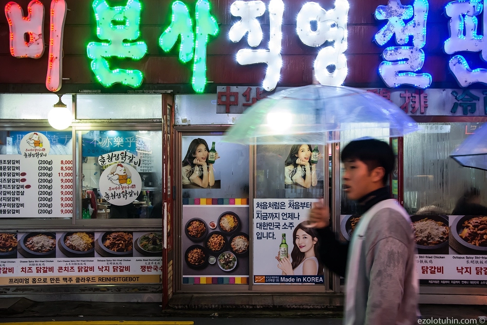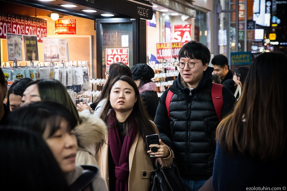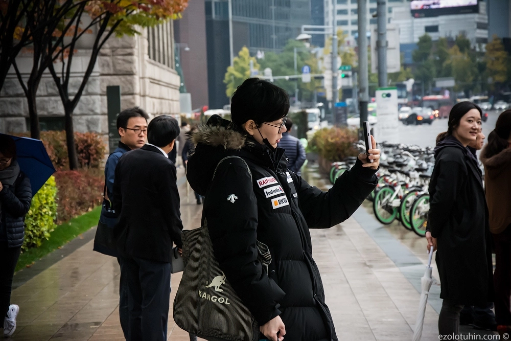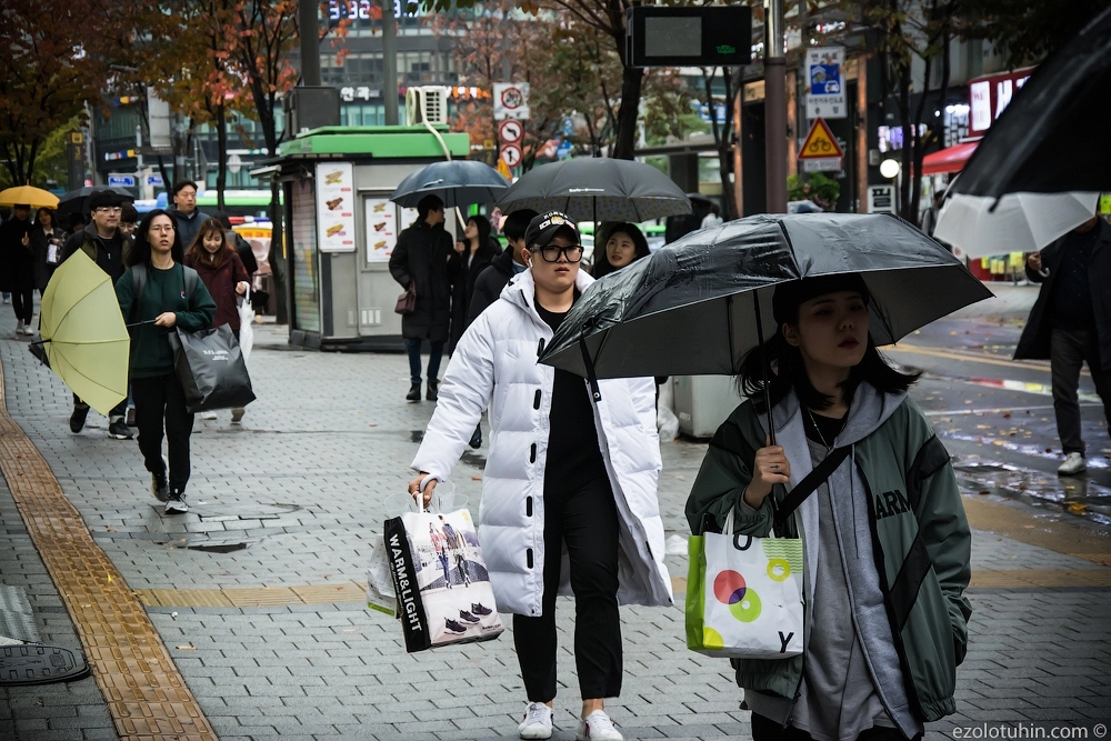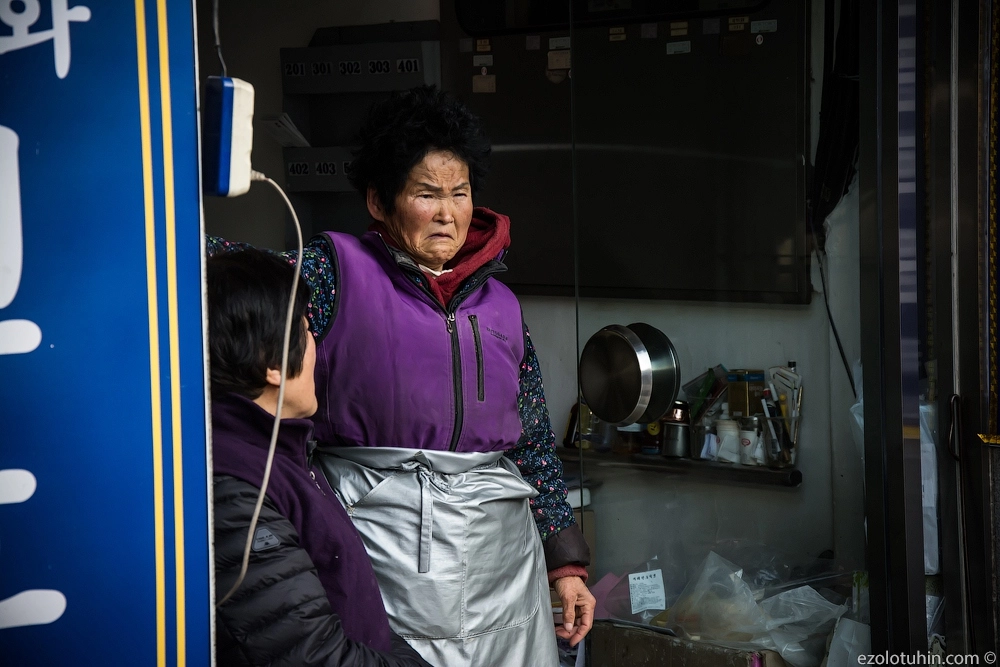 Например, одна корейская бабуля бежала за нами минут тридцать и требовала перестать фотографировать на улицах, в качестве наказания за непослушание, она демонстративно сфотографировала нас в лоб.