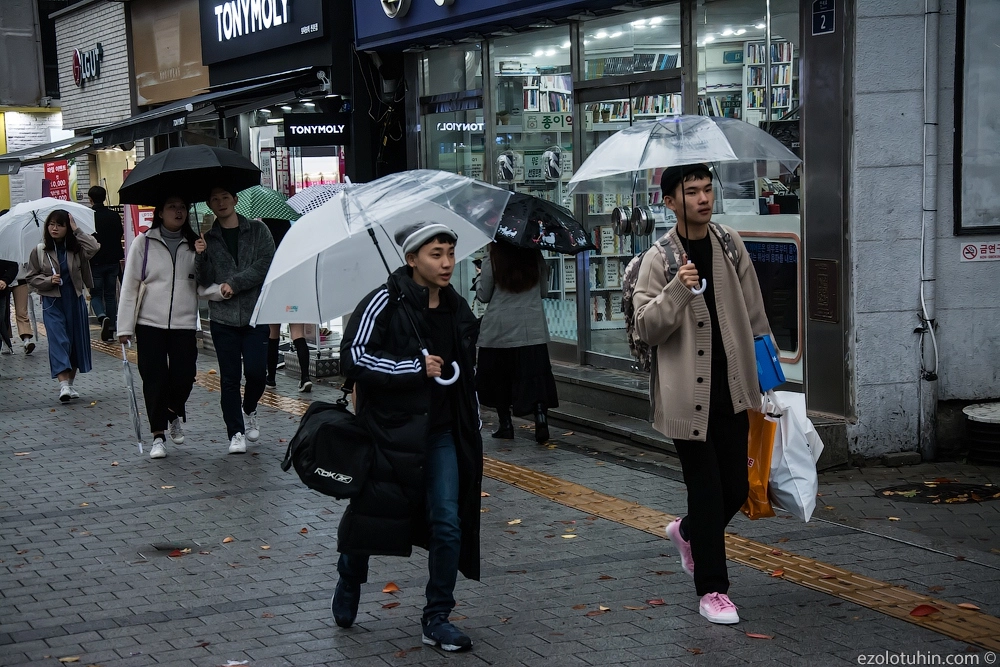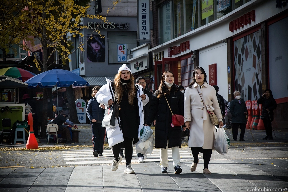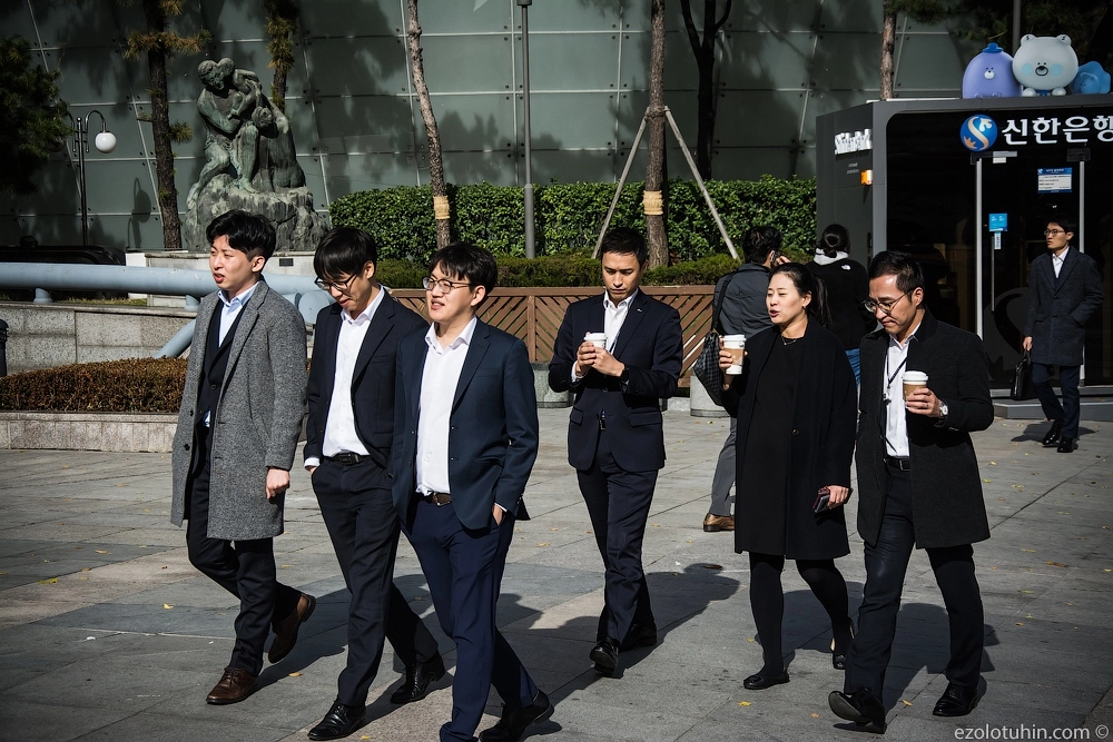 На улицах довольно много можно встретить корейцев в стиле наших «гопников», а мужчины постарше и вовсе носят костюмы, и выглядят достаточно сурово.