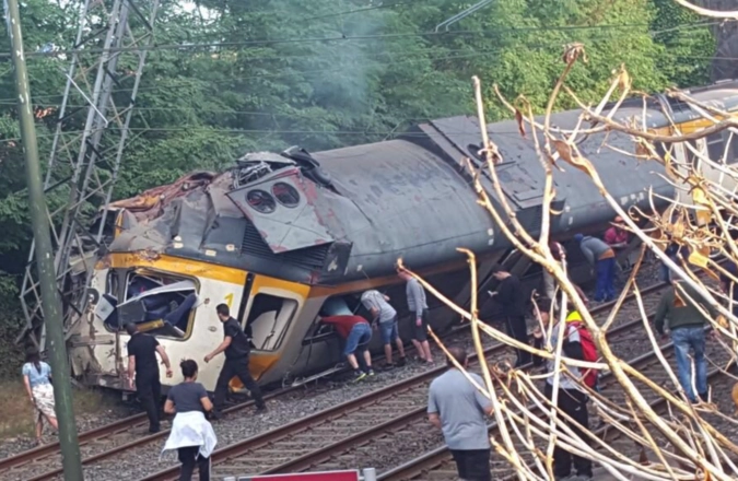 Инцидент произошел сегодня утром недалеко от железнодорожной станции Порриньо. По неподтвержденной информации, поезд, следовавший из Виго в португальский Порту через Валенса-до-Минью, столкнулся с путепроводом.