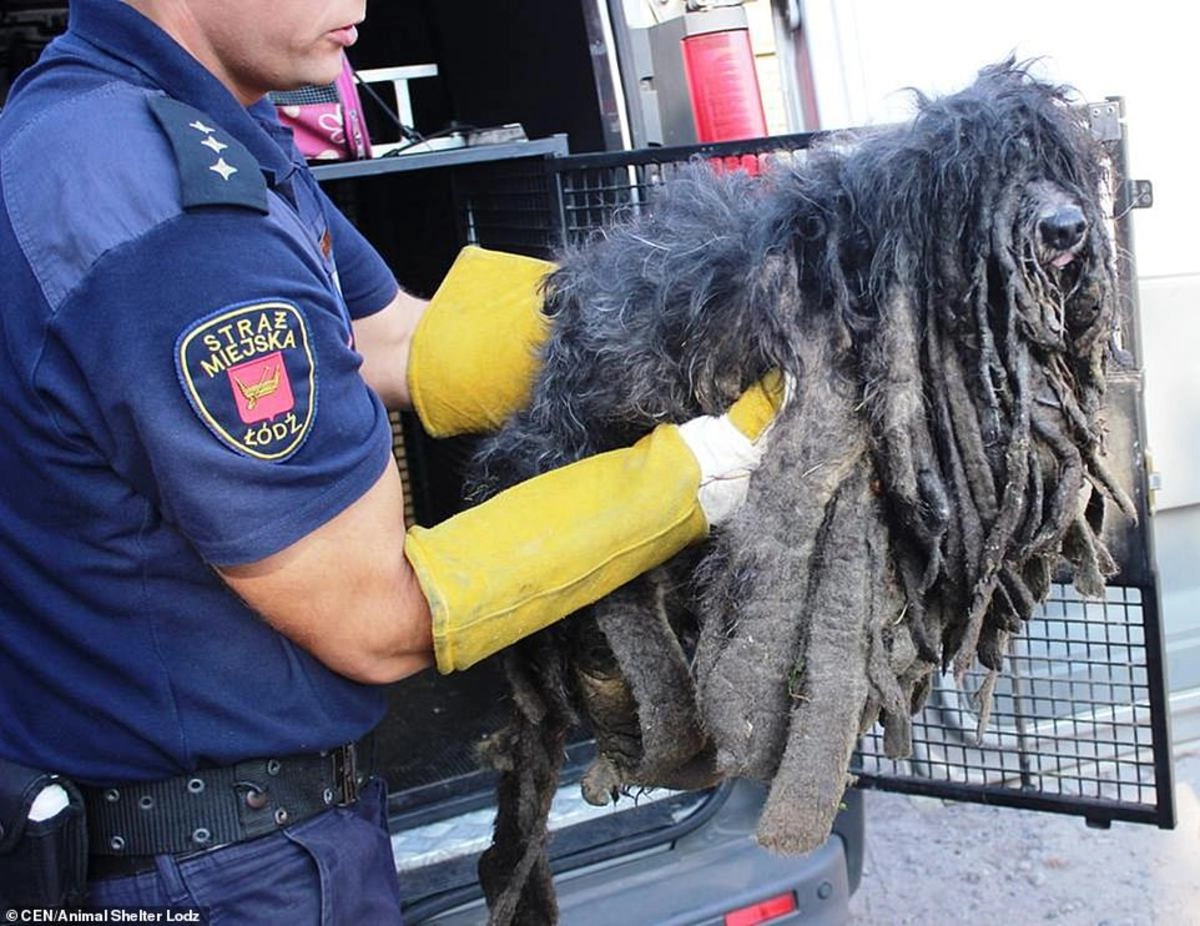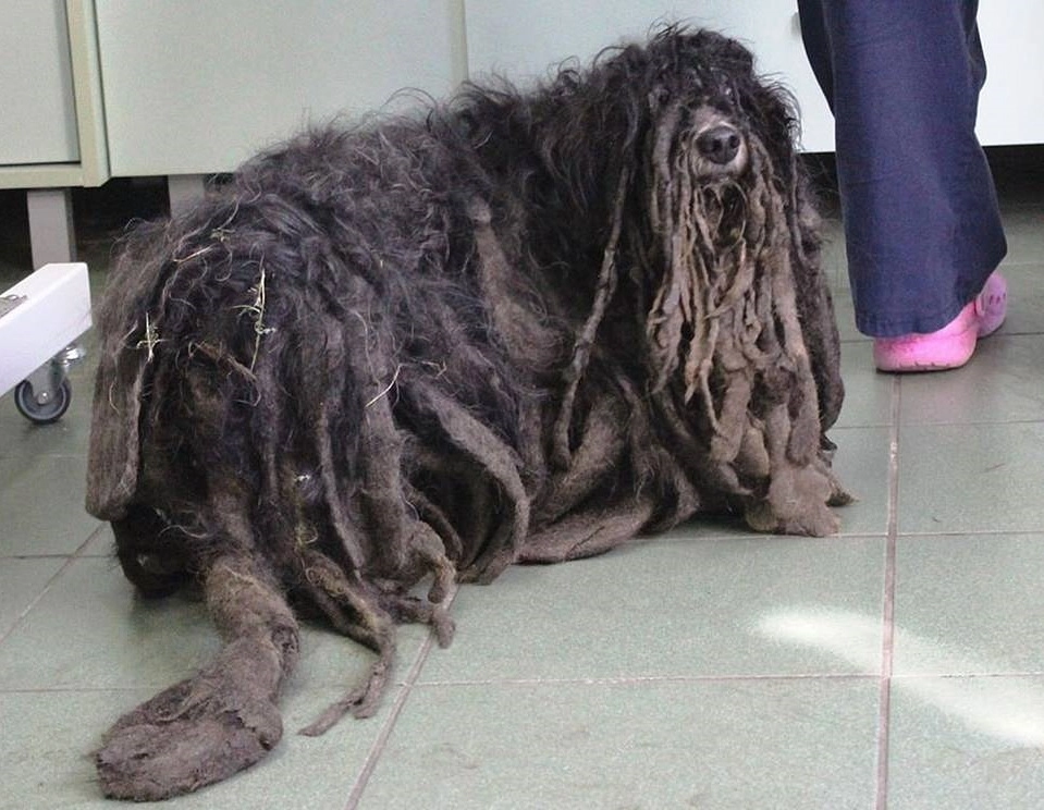 Польские зоозащитники рассказали журналистам трогательную историю спасения животного от гибели. В городе Лодзь в одном доме жила собака вполне счастливой собачьей жизнью. Но потом её хозяин начал злоупотреблять алкоголем и совсем забыл о питомце. Бедного пса заметили соседи и забили тревогу. Зверь настолько зарос шерстью, что уже с трудом передвигался.