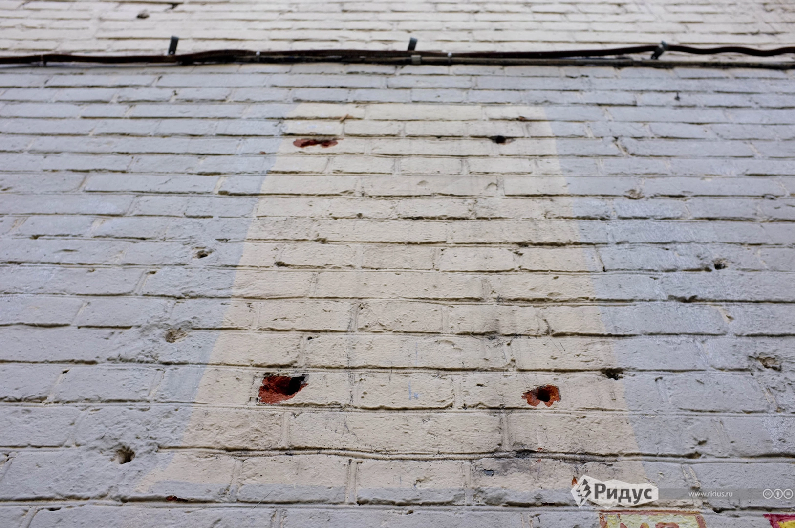 На углу дома находилась табличка размером примерно метр на пол метра. Теперь там 4 дыры с обвалившимся кирпичем вокруг них. Вообще сам дом выглядит плохо и обшарпано и то, что там была табличка, можно догадаться лишь по тому, что краска под табличкой отличается цветом от стены. А перед тем местом, где висела табличка, — раскопки и замена труб, сообщил корреспондент «Ридуса».