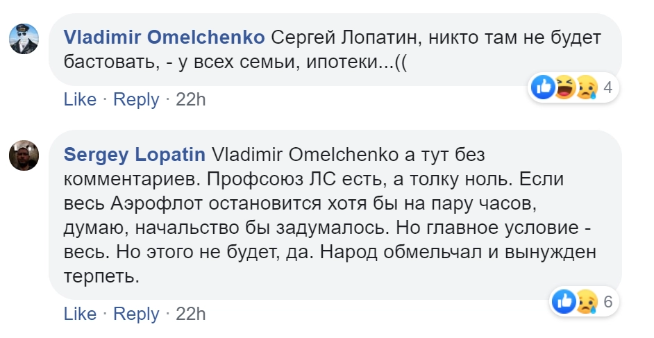 По ее словам, у профсоюза есть правовое и юридическое обоснование незаконности предложений авиакомпании. Но всё упирается в пассивность самих работников компании, которые прячут головы в песок и дальше жалоб в соцсетях идти боятся или ленятся.