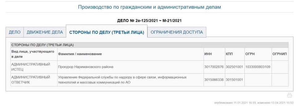 Ну а во-вторых, истцом по делу, предметом рассмотрения которого стала статья «Ридуса», выступала прокуратура, а ответчиком — региональный Роскомнадзор. Это как если бы Петр подал в суд на Ивана, а приговор по итогу получил бы Николай.