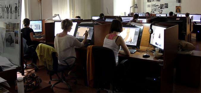За полчаса мы обходим заметную часть студии - всего она занимает полторы тысячи квадратных метров, а работает здесь 170 человек. Хотя в просторных комнатах художники сидят за компьютерами, на стенах висят отсканированные акварели – сперва всё рисуется вручную, а уж затем переводится в цифру. Совмещение рукотворного искусства и самых современных компьютерных технологий – творческий принцип студии.