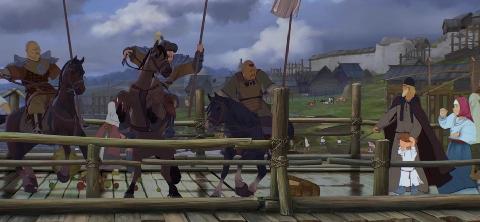 Нас усаживают, чтобы показать тестовую сцену из мультфильма и ролик о его создании. Техника, как нарочно, чего-то барахлит – и нормально изображение запускается лишь с третьего раза. Пока с этим разбираются, успеваем рассмотреть выведенный на большой экран компьютерный рабочий стол – рисунок робота Валли и монстра Салли. Непатриотично, конечно, но ориентиры мирового уровня. Но вот появляется Сергий Радонежский – он выходит из леса, приближается к городу. И по дороге встречается не только с местными жителями, но и с понаехавшими злобными представителями Золотой Орды. По времени сцена небольшая, но нельзя не заметить задействованную огромную массовку – в кадре, пожалуй, добрая сотня разнообразных персонажей, каждый из которых движется, занятый своим делом. Камера совершает длительный пролёт над водой, над землёй, разворачивается, взлетает!.. Маленький зритель, быть может, этого фокуса и не оценит, примет как данность, но профессионалы, понимающие, как непросто всё это сделать, подобные трюки уважают.