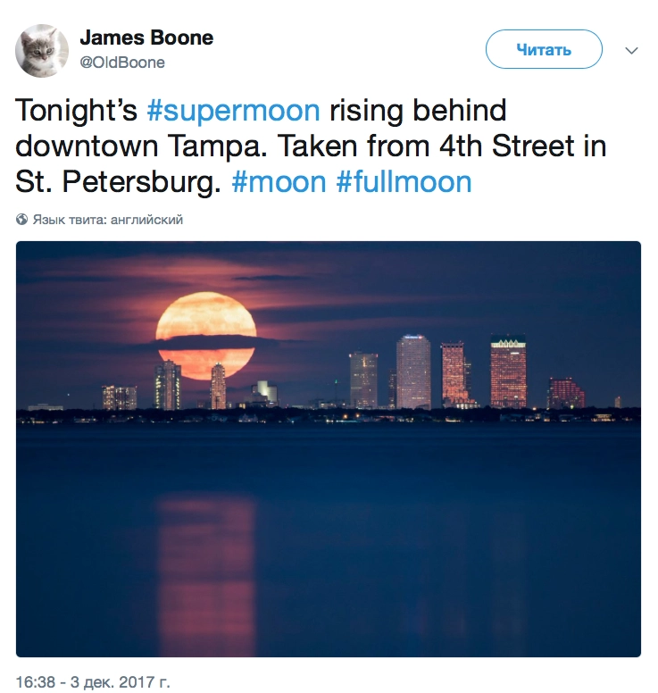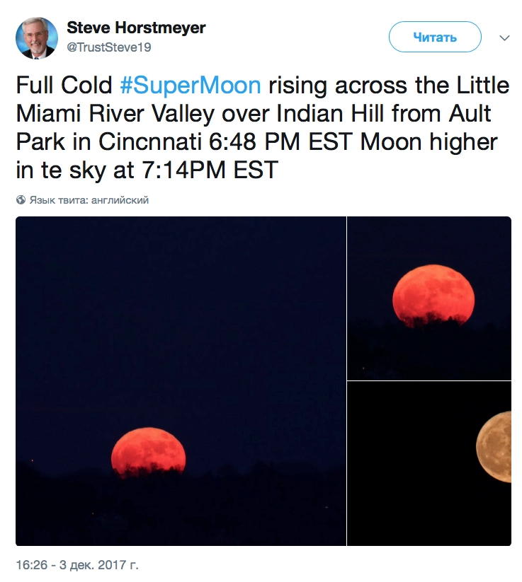 По прогнозам астрономов, 4 декабря в 8:43 Луна должна была приблизиться к Земле на минимальное расстояние за 2017 год — 357 495 километров.
