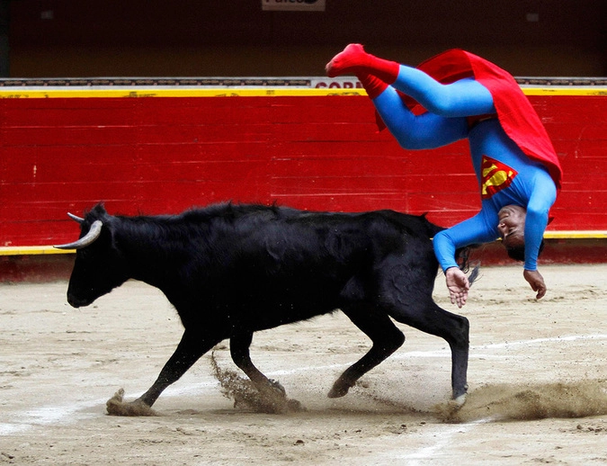 Тореадор Педро Санчес в костюме супермена на арене Plaza de Toros la Macarena в Медельине, Колумбия. © Albeiro Lopera/Reuters