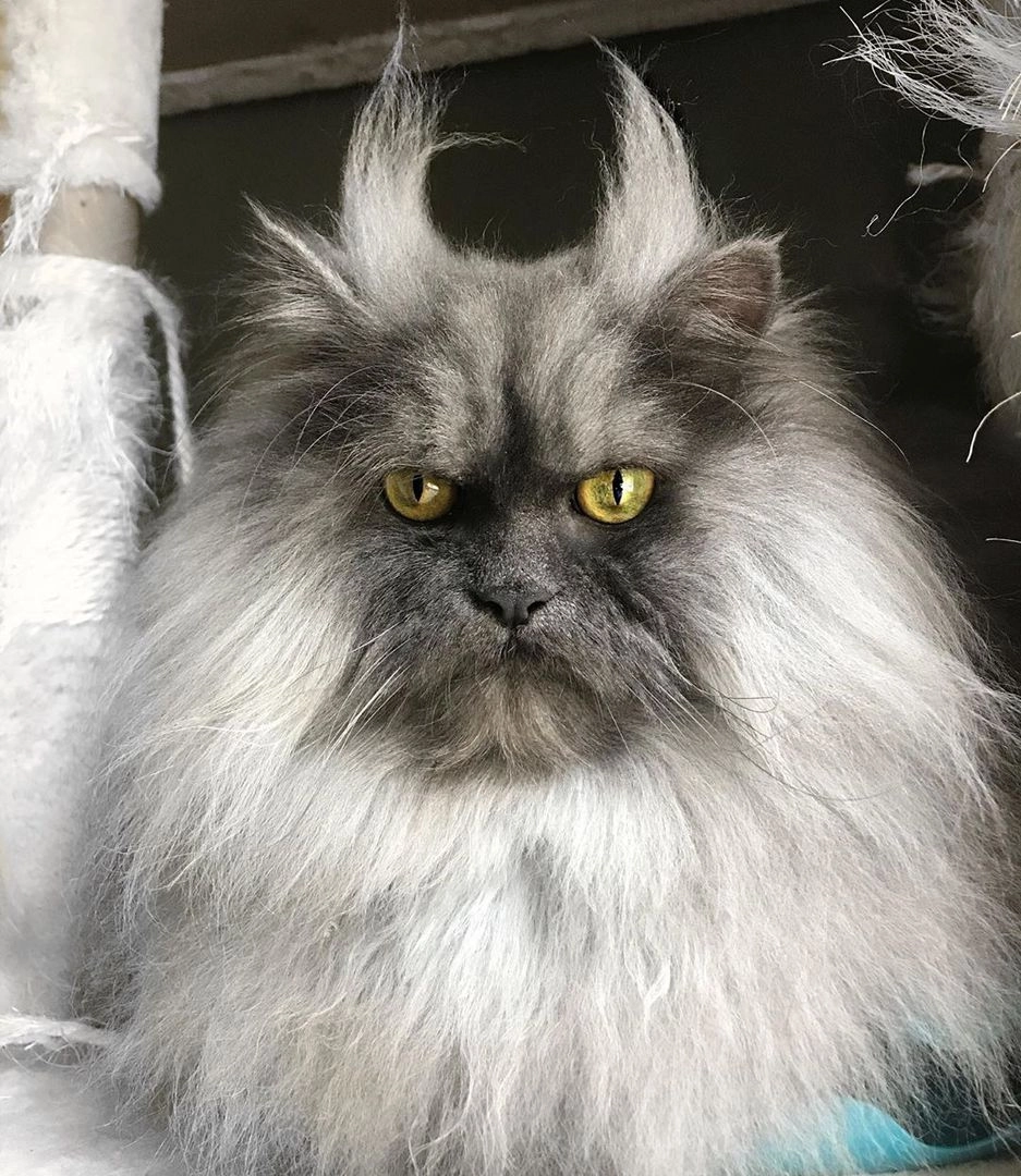 Суровая кошка с причудливой причёской стала интернет-звездой