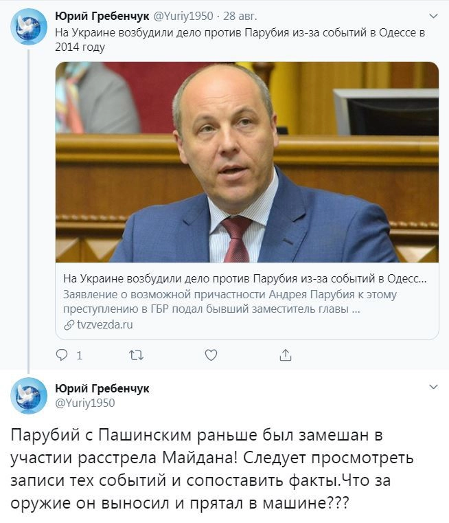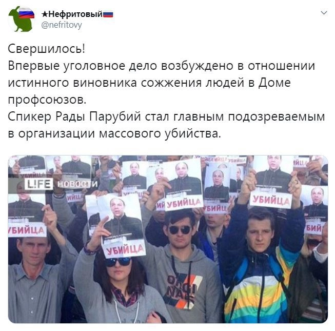 В отношении действующего спикера Верховной рады Украины Андрея Парубия возбуждено уголовное дело на предмет его причастности к массовой гибели людей в результате поджога Дома профсоюзов в Одессе 2 мая 2014 года.
