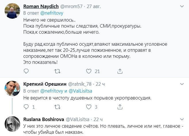 В социальных сетях на новость отреагировали по-разному, в зависимости от политических взглядов и оценки событий последних пяти лет на Украине. Одни выразили надежду на справедливое разбирательство, тогда как другие усомнились, что истинные виновники трагедии будут установлены и осуждены.