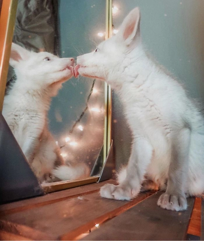 Некоторые животные и даже птицы способны узнавать себя в зеркале, например, человекообразные обезьяны, слоны, дельфины и сороки. Но для всех остальных зверей отражение — все равно, что пришелец. По крайней мере, если судить по реакции на их первую встречу с зеркалом. Они часто ошарашенно или отстраненно смотрят на своих двойников, а порой даже напрыгивают на отражение, пытаясь атаковать подозрительного зверя, дотрагиваются до него лапами или стараются облизать.