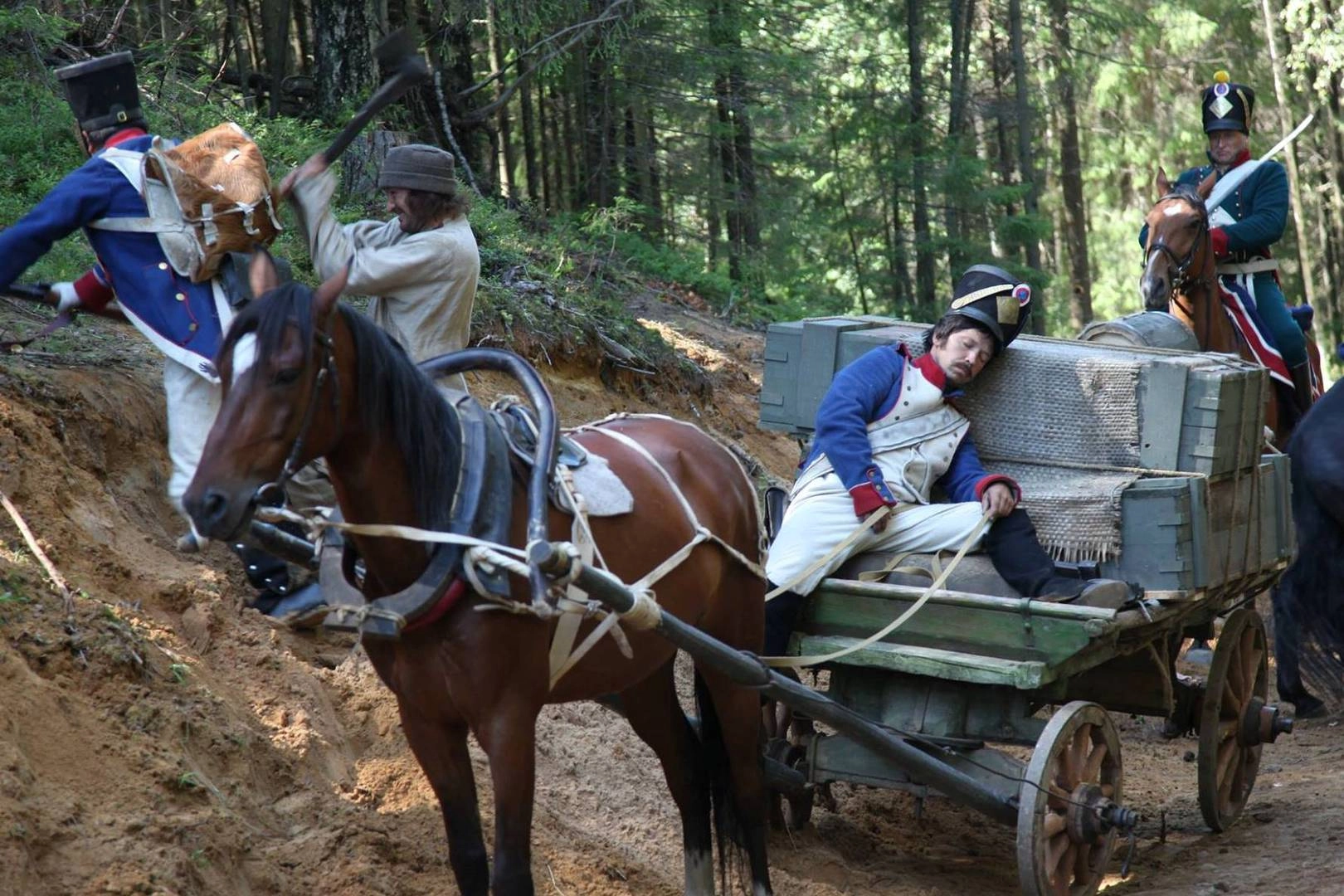 А к чему здесь Наполеон собственной персоной? К чему Александр I? К чему, в конце концов, Пушкин, этот «маленький гений», слава о котором в 1812-м году уже идёт, оказывается, по всей России (что, к слову, слегка противоречит энциклопедической справке)?.. Обескураженный творящимся на экране безобразием, в какой-то момент начинаешь вдруг верить, что фильм сейчас возьмёт — и пойдёт по пути «Бесславных ублюдков», чтобы Василиса могла исполнить возложенную на неё Родиной миссию и лично заколоть вилами случайно повстречавшегося ей на лесной дорожке императора Франции. Это, конечно же, вмиг бы всё оправдало и сняло бы с авторов любые подозрения в непрофессионализме, но… но… Короче, в чём собственно заключается исторический подвиг данной Василисы создателями картины не уточняется. Догадывайтесь, мол, сами.