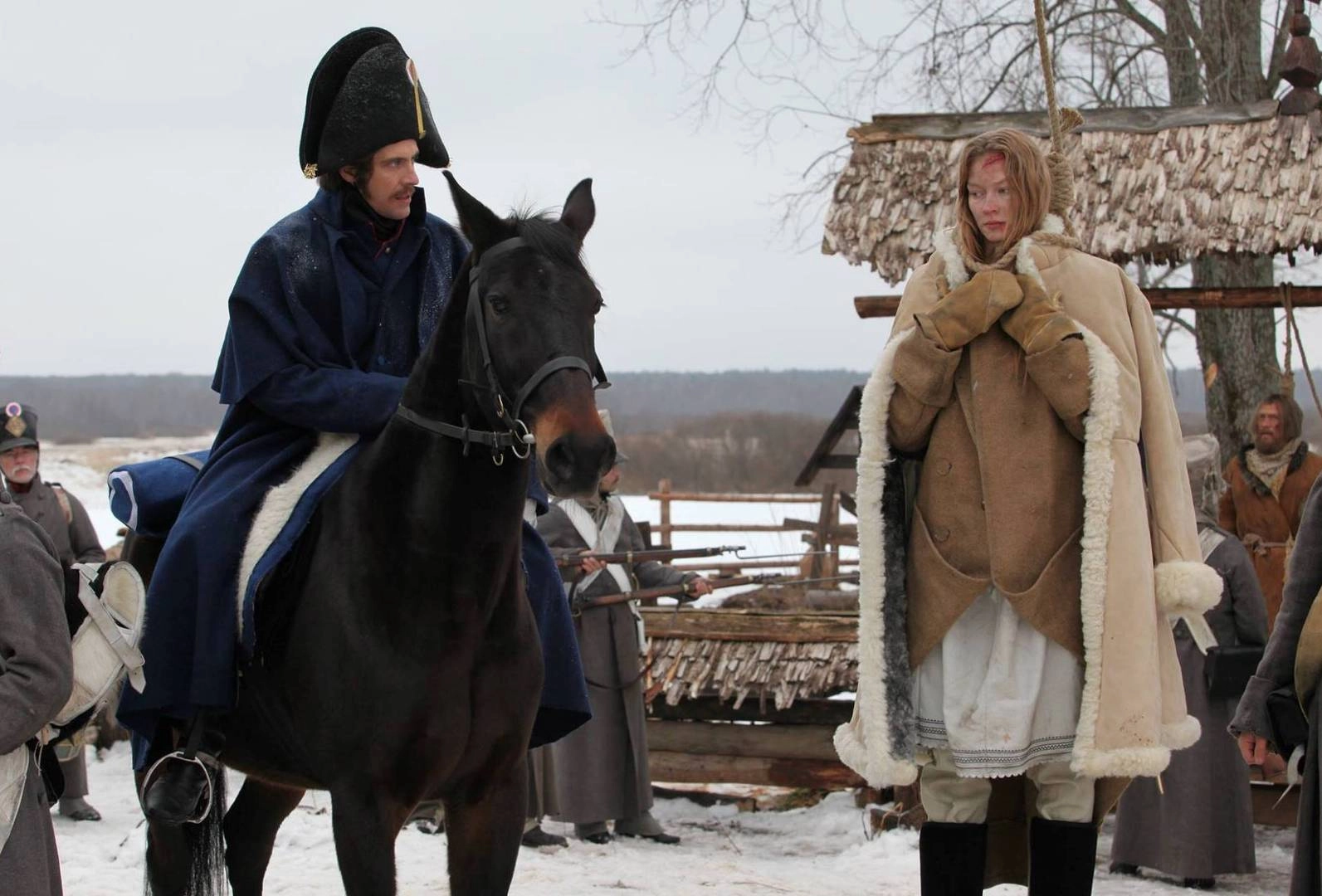 Без оного остаётся и тот сосед-россиянин, что плетью бьёт пострадавшую за правое дело Василису: тот факт, что крестьянку смертным боем бьёт не француз, а свой же, деревенский, остаётся отчего-то без осуждения, мельком да на заднем плане. А зато какова сестра Василисы! Родную-то кровь — и готова предать ради Парижа! И что же? После предательства она пропадает из фильма, словно её и не было. Вот что с ней случилось? Осуждена на каторгу, посажена на кол, умерла при родах?.. Вариант «расскажут в телеверсии» нам никак не подходит: про судьбу провраждебной гадюки заплативший за билет зритель захочет узнать непосредственно из фильма.