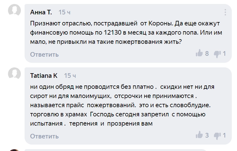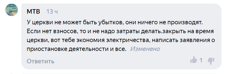 Некоторые высказались о том, что разговоры о тратах церкви и обязательности пожертвований слишком далеки от идеи православия.